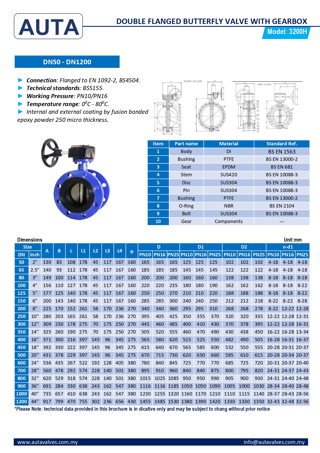 3200H / Double Flanged Butterfly Valve With Gearbox