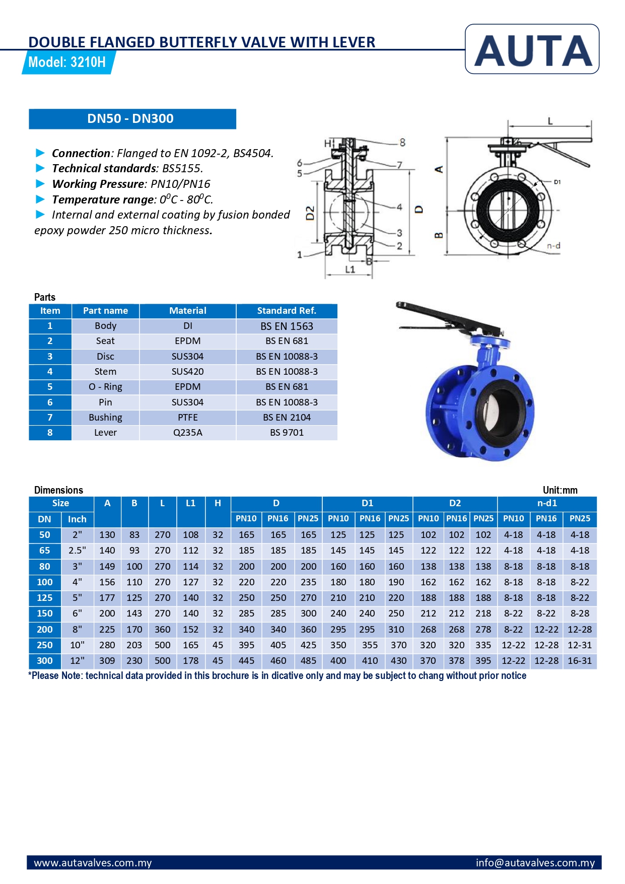 3210H / Double Flanged Butterfly Valve With Lever